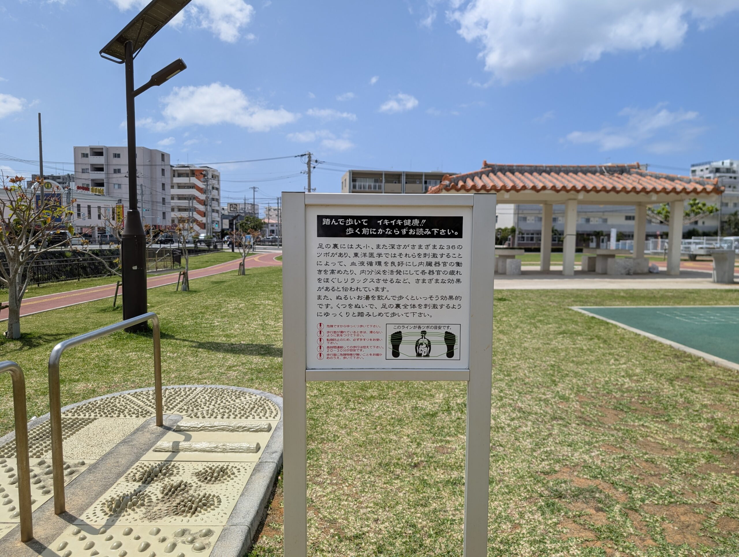 【沖縄・北谷】奈留川西公園で健康ロード体験!還暦お爺さんおすすめの「足ツボ」と「ベンチ」